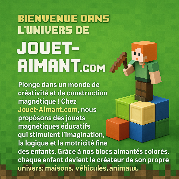 Jouet-Aimant.com propose une large gamme de jouets magnétiques et de blocs de construction aimantés inspirés des systèmes de construction libres et créatifs comme ceux que l’on retrouve dans des jeux populaires de type bac à sable.